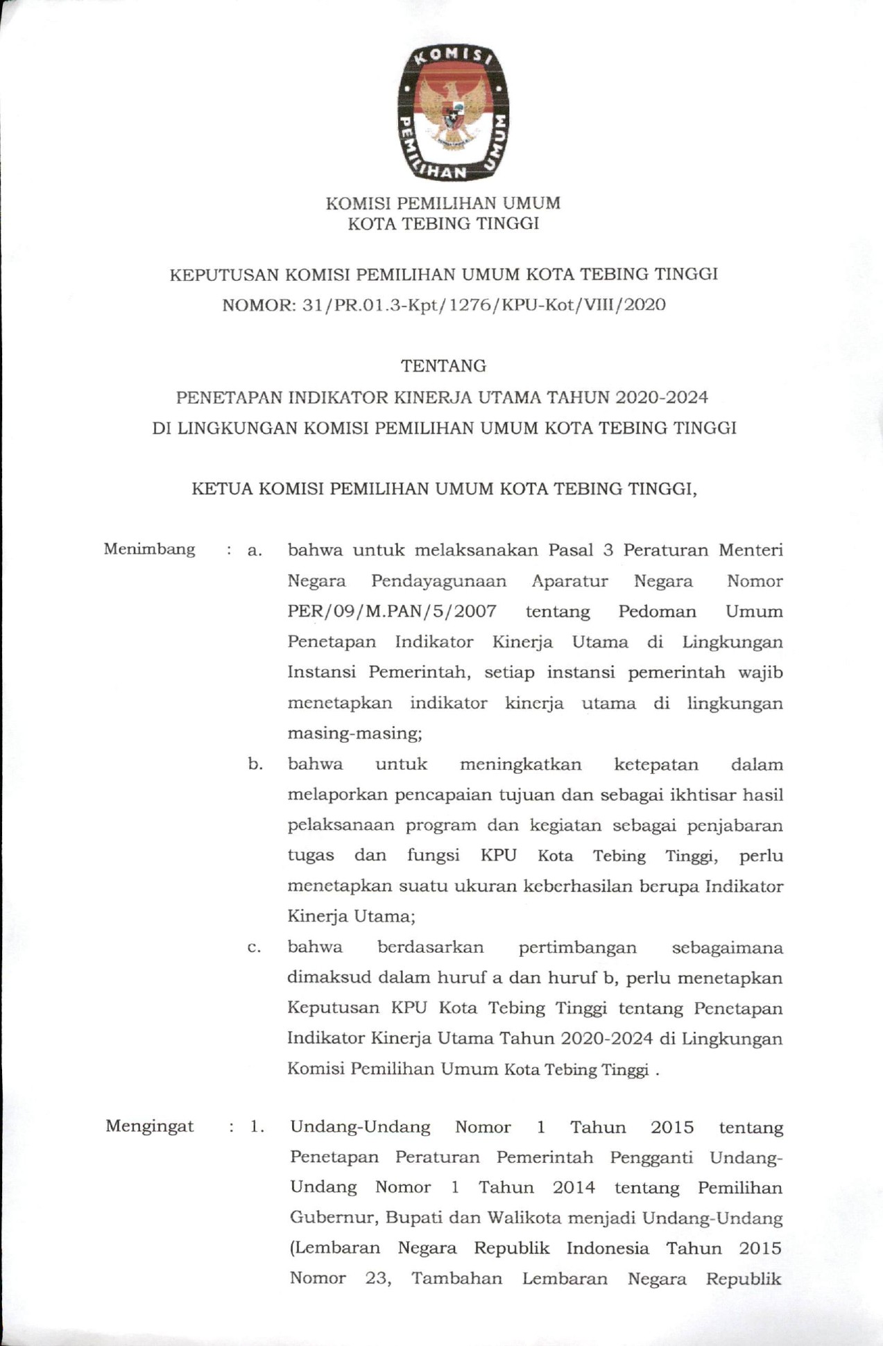 PENETAPAN INDIKATOR KINERJA UTAMA TAHUN 2020-2024 DI LINGKUNGAN KPU KOTA TEBING TINGGI Sabtu, 13 Agustus 2022 07:00 1316 SK IKU KPU KOTA TEBING TINGGI 2020-2024 Baca Selengkapnya