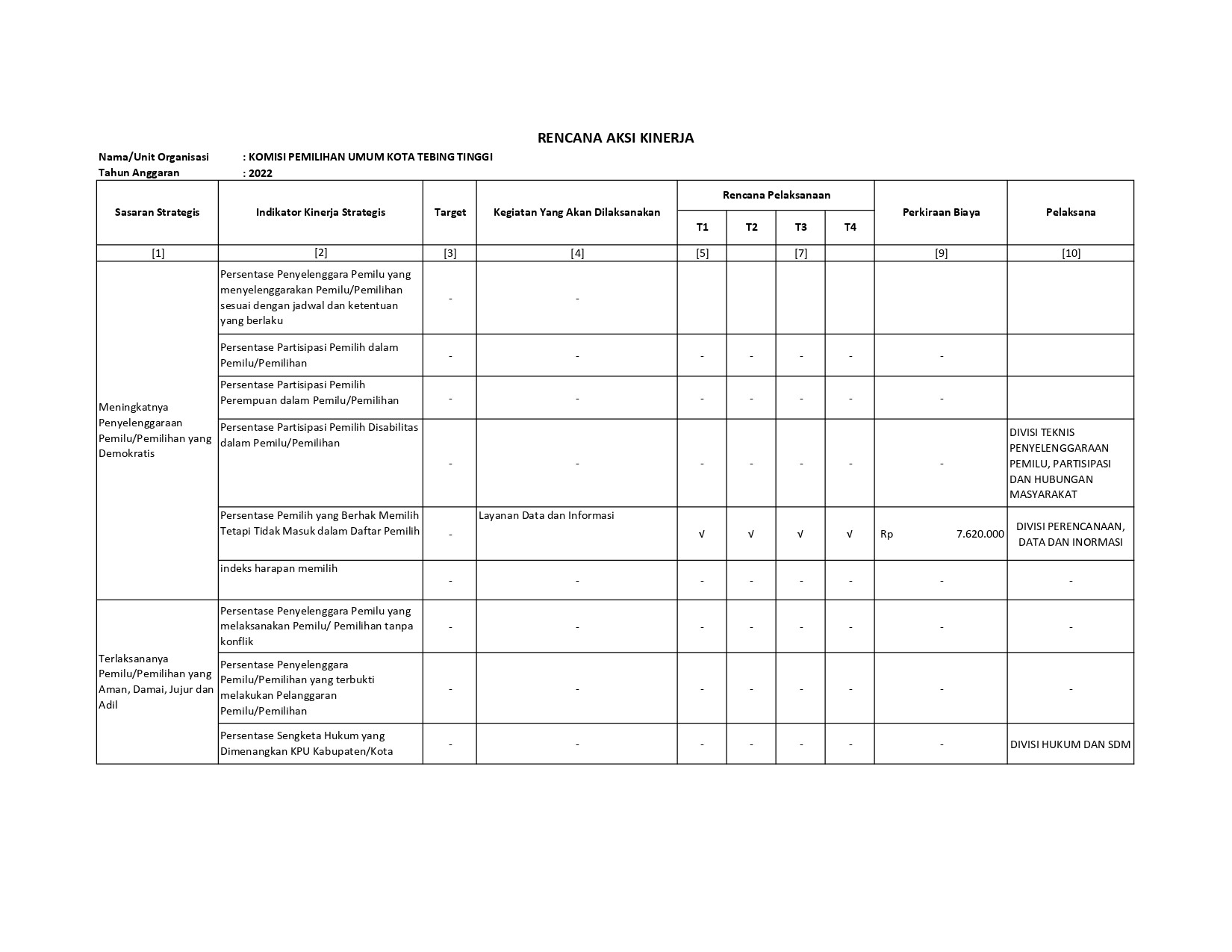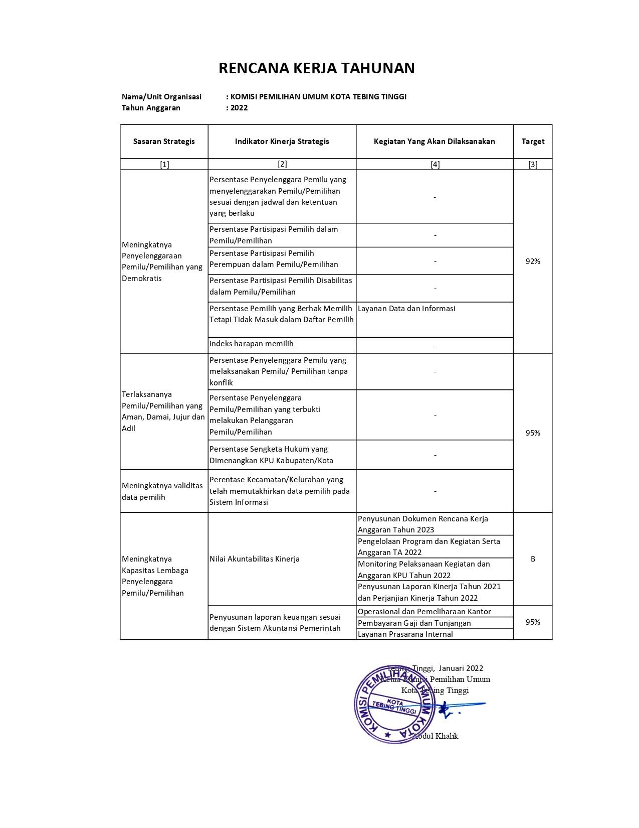 Rencana Kerja Tahunan Sekretariat & KPU Kota Tebing Tinggi Tahun Anggaran 2022 Sabtu, 01 Januari 2022 07:00 1160 RKT KPU 2022.pdf RKT SEKRETARIAT KPU TEBING TINGGI TAHUN 2022.pdf Baca Selengkapnya
