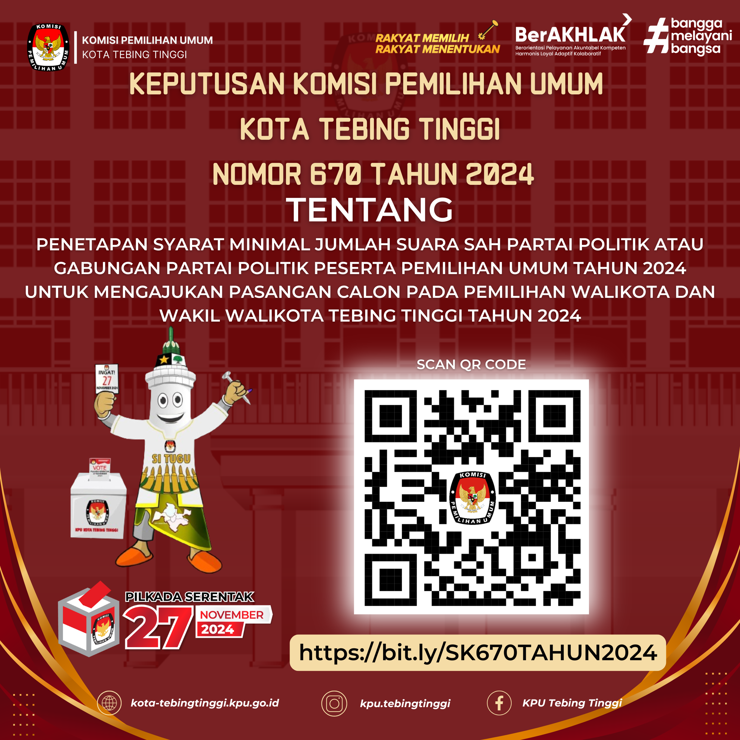 KEPUTUSAN KOMISI PEMILIHAN UMUM KOTA TEBING TINGGI NOMOR 670 TAHUN 2024