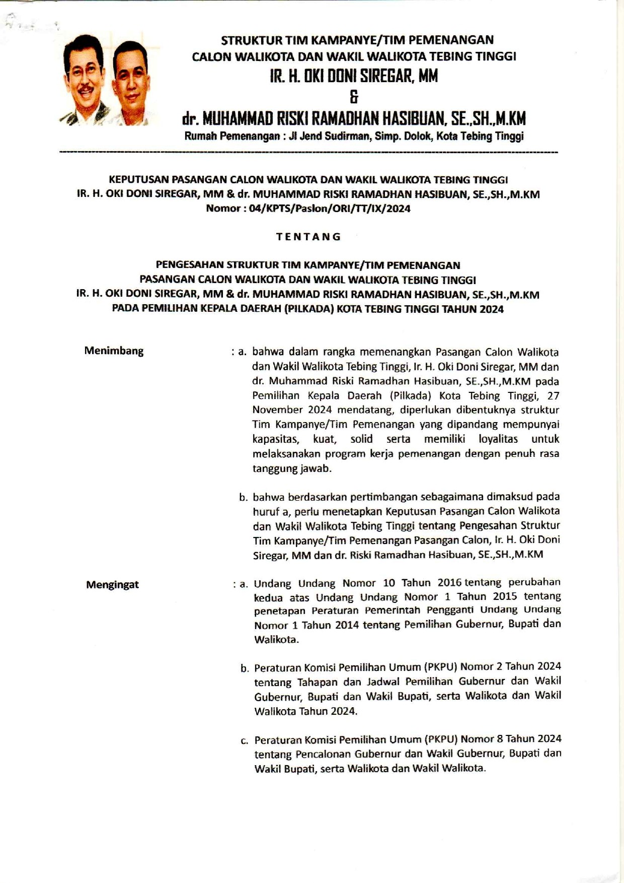 SK TIM KAMPANYE PASANGAN CALON NOMOR URUT 3 Jumat, 25 Oktober 2024 17:00 1279 LIHAT SELENGKAPNYA Baca Selengkapnya