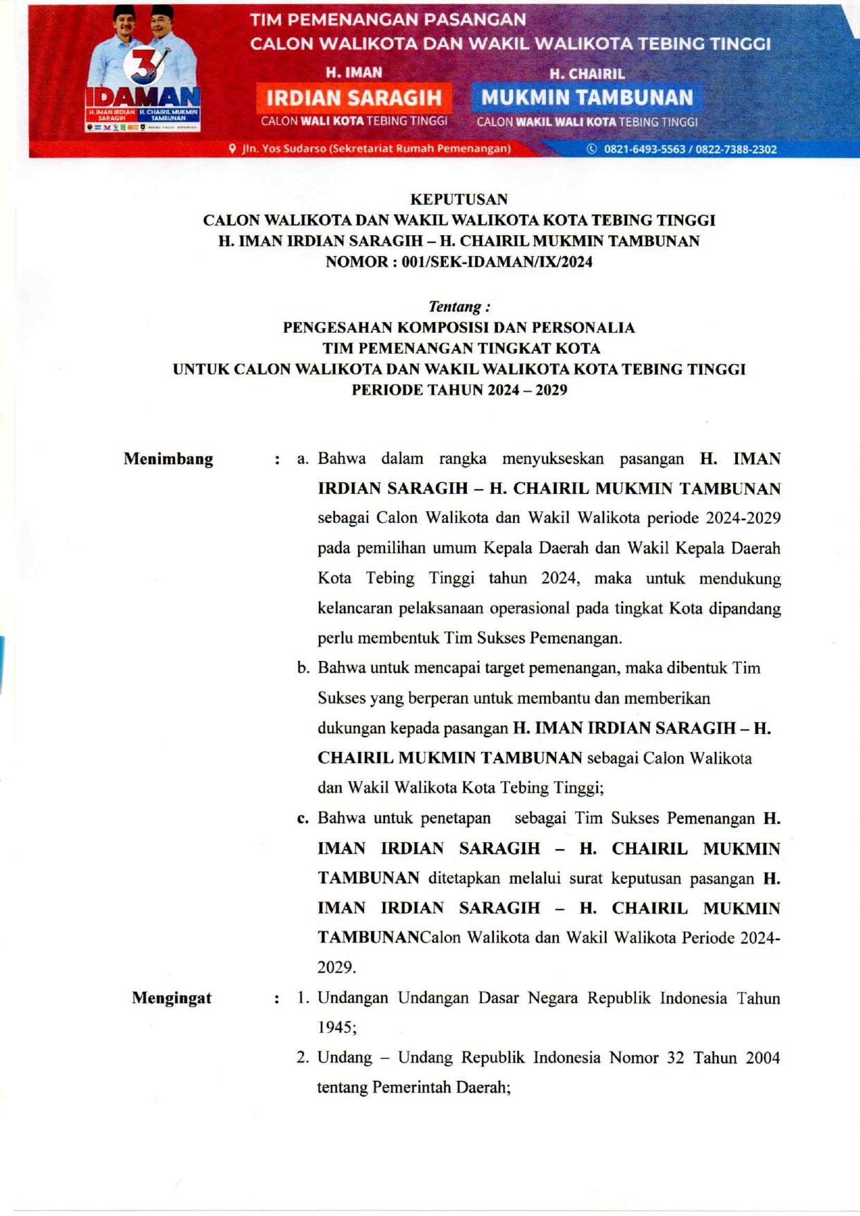 SK TIM KAMPANYE PASANGAN CALON NOMOR URUT 1 Jumat, 25 Oktober 2024 17:00 1333 LIHAT SELENGKAPNYA Baca Selengkapnya