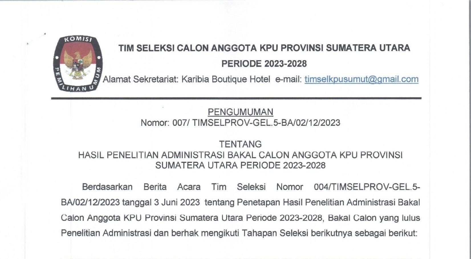 Pengumuman Daftar Calon Sementara Anggota DPRD Kota Tebing Tinggi dalam Pemilihan Umum 2024