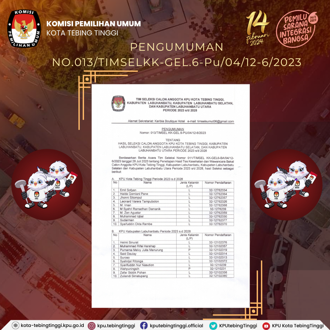 3. Informasi lebih lanjut dapat menghubungi helpdesk pencalonan KPU Kota Tebing Tinggi.